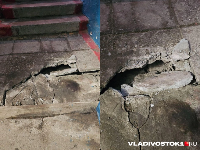 «Сначала парило из подвала, мы писали жалобы и звонили в УК, но реакции не было. Сегодня, 5 января, при входе в подъезд уже провалился пол», — рассказали жители.